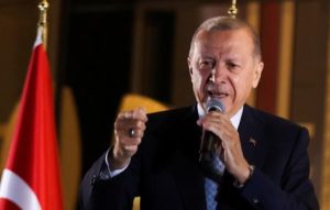Turkish President Tayyip Erdogan addresses his supporters following his victory in the second round of the presidential election at the Presidential Palace in Ankara, Turkey May 29, 2023. REUTERS/Umit Bektas