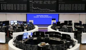 FILE PHOTO: The German share price index DAX graph is pictured at the stock exchange in Frankfurt, Germany, May 24, 2023. REUTERS/Staff