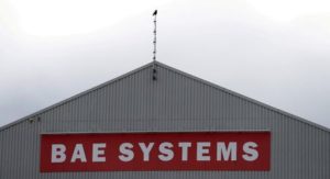 FILE PHOTO: A sign adorns a hangar at the BAE Systems facility at Salmesbury, near Preston, northern England March 10, 2016. REUTERS/Phil Noble/File Photo