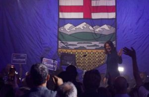 Danielle Smith of the United Conservative Party (UCP) gestures during her party’s provincial election night party after a projected win in Calgary, Alberta, Canada May 29, 2023. REUTERS/Todd Korol