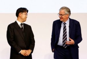 Toyota Motor Corp. President and Chief Executive Koji Sato and Daimler Truck Chief Executive Martin Daum attend their joint news conference in Tokyo, Japan, May 30, 2023. REUTERS/Kim Kyung-Hoon