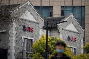 FILE PHOTO: A person stands in front of the logo of Swiss bank UBS, seen at the bank’s branch in Shanghai, China, March 20, 2023. REUTERS/Aly Song
