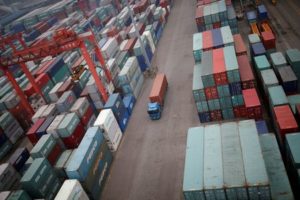 FILE PHOTO: A truck drives between shipping containers at a container terminal at Incheon port in Incheon, South Korea, May 26, 2016. REUTERS/Kim Hong-Ji/File Photo