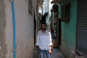 Nizamudin Abdul Rahim Khan, 23, a worker, poses for a photograph in an alley at a slum area in Mumbai, India, May 20, 2023. REUTERS/Niharika Kulkarni