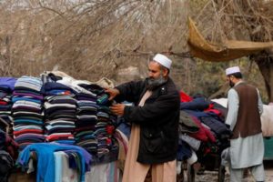 FILE PHOTO: Men check secondhand clothes at the Landa Bazar in Peshawar, Pakistan January 10, 2023. REUTERS/Fayaz Aziz