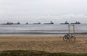 FILE PHOTO: Ships navigate on the waters of Macae, where Petrobras has its biggest offshore oil base, April 1, 2015. REUTERS/Ricardo Moraes/File Photo
