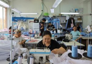 FILE PHOTO: A seamstress works at a sewing workshop in