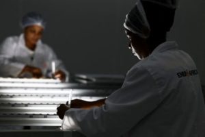 FILE PHOTO: A woman tests LED lights on solar panels at their factory called Ener-G-Africa, where they produce high-quality solar panels made by an all-women team, in Cape Town, South Africa, February 9, 2023. REUTERS/Esa Alexander