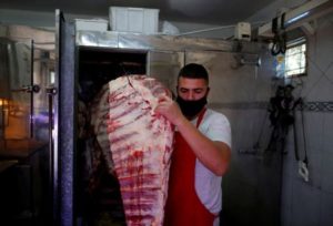 FILE PHOTO: Butcher Pablo Alberto Monzon carries a costillar (cow ribs) out of his fridge, at his shop, in General Pacheco, on the outskirts of Buenos Aires, Argentina May 19, 2021. Picture taken May 19, 2021. REUTERS/Agustin Marcarian