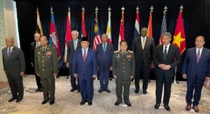 Singapore’s Minister for Defence Dr Ng Eng Hen and the U.S. Defense Secretary Lloyd Austin pose for a group photo with Southeast Asia Defence Ministers and their representatives on the sidelines of the 20th Shangri-La Dialogue in Singapore June 2, 2023. Singapore Ministry of Defence/Handout via REUTERS