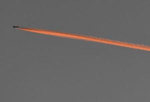 FILE PHOTO: The setting sun illuminates an aircraft’s contrail as it flies, as viewed from Glastonbury, Britain, January 17, 2022. REUTERS/Toby Melville/File Photo