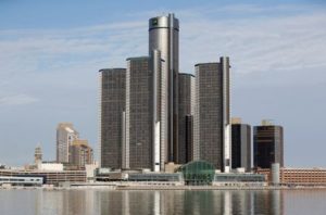 FILE PHOTO: The General Motors Co. headquarters is seen in Detroit, Michigan, from across the Detroit River in Windsor, Ontario, Canada January 11, 2019. REUTERS/Rebecca Cook/