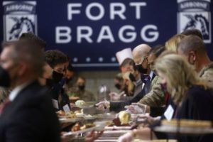 FILE PHOTO: U.S. President Joe Biden serves food during a Thanksgiving event with U.S. service members and military families at Fort Bragg, North Carolina, U.S., November 22, 2021. REUTERS/Leah Millis