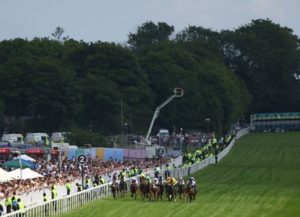 Horse Racing – Epsom Derby Festival – Epsom Downs Racecourse, Epsom, Britain – June 3, 2023 General view of riders during the 14:45 Aston Martin 3YO ‘Dash’ Handicap Action Images via Reuters/Matthew Childs