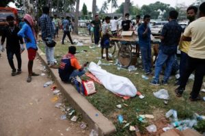 A man sits next to a body of a victim after collecting it from a mortuary, in the aftermath of trains collision in Balasore district in the eastern state of Odisha, India, June 3, 2023. REUTERS/Adnan Abidi