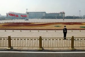 FILE PHOTO: A paramilitary police officer stands guard on the Tiananmen Square, before the opening session of the Chinese People’s Political Consultative Conference (CPPCC) at the Great Hall of the People in Beijing, China March 4, 2023. REUTERS/Thomas Peter