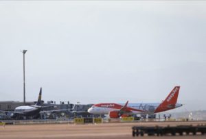 A Ryanair Boeing 737-8AS and an easyJet Airbus A320neo aircraft parked are seen on the tarmac of Adolfo Suarez Madrid-Barajas Airport, in Madrid, Spain, June 22 2022. REUTERS/Isabel Infantes