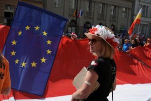 A woman takes part in a march on the 34th anniversary of the first democratic elections in postwar Poland, in Warsaw, Poland, June 4, 2023. REUTERS/Kacper Pempel