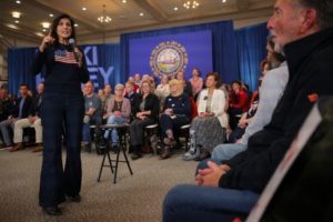 FILE PHOTO: Republican presidential candidate and former U.S. Ambassador to the United Nations Nikki Haley speaks during a campaign town hall meeting in Bedford, New Hampshire, U.S., April 26, 2023. REUTERS/Brian Snyder