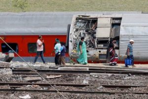 People walk past a damaged coach at the site of a train collision following the accident in Balasore district in the eastern state of Odisha, India, June 4, 2023. REUTERS/Adnan Abidi
