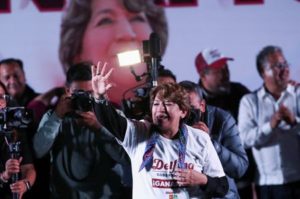 Delfina Gomez, candidate for governor of the State of Mexico for the National Regeneration Movement (MORENA), reacts after preliminary results of the state election were announced, in Toluca, Mexico June 4, 2023. REUTERS/Henry Romero