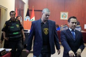 FILE PHOTO: Dutch citizen Joran Van der Sloot (C) enters the courtroom in the Lurigancho prison in Lima January 6, 2012. Van der Sloot went on trial on Friday for killing Stephany Flores in 2010, five years to the day after a U.S. teenager vanished on the island of Aruba after spending time with him. REUTERS/Pilar Olivares
