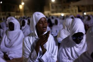 A Senegalese Muslim from the Layene Brotherhood, a religious sect of Sufi Muslims, prays for peace and stability following violent protests that broke out after opposition leader Ousmane Sonko was sentenced to prison in Dakar, Senegal June 4 2023. REUTERS/Zohra Bensemra