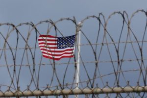 The United States flag flies inside of Joint Task Force Guantanamo Camp VI at the U.S. Naval Base in Guantanamo Bay, Cuba March 22, 2016. REUTERS/Lucas Jackson/File Photo