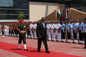 U.S. Secretary of Defense Lloyd Austin walks during his ceremonial reception in New Delhi, India, June 5, 2023. REUTERS/Anushree Fadnavis