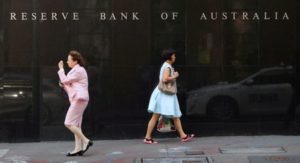 FILE PHOTO: Two women walk next to the Reserve Bank of Australia headquarters in central Sydney, Australia February 6, 2018. REUTERS/Daniel Munoz