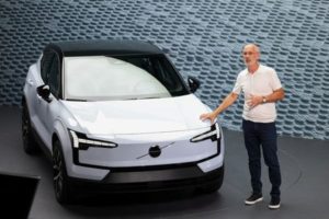 Jim Rowan, Volvo President & Chief Executive Officer, speaks during the reveal event of the Volvo EX30 electric SUV vehicle in Milan, Italy June 7, 2023. REUTERS/Claudia Greco