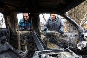 FILE PHOTO: Ed and Richard Quick look at the remains of their Ford F-150 after the Marshall Fire in Louisville, Colorado, U.S. December 31, 2021. REUTERS/Alyson McClaran/File Photo
