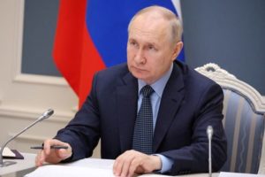 FILE PHOTO: Russian President Vladimir Putin chairs a video conference meeting to discuss agricultural issues including spring field operations in Moscow, Russia, May 18, 2023. Sputnik/Mikhail Klimentyev/Kremlin via REUTERS