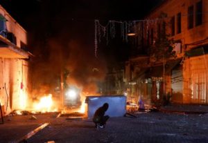 A Palestinian takes cover behind a barricade as the Israeli army raids Ramallah, in the Israeli-occupied West Bank, June 8, 2023. REUTERS/Mohammed Torokman