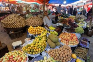 A vendor speaks with a customer while selling fruits at a market in Karachi, Pakistan June 8, 2023. REUTERS/Akhtar Soomro