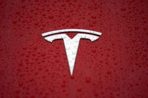 FILE PHOTO: A Tesla logo is seen at Tesla Shanghai Gigafactory in Shanghai, China January 7, 2019. REUTERS/Aly Song/File Photo