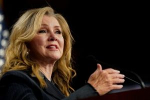 FILE PHOTO: U.S. Senator Marsha Blackburn (R-TN) speaks during a Republican news conference ahead of the Senate confirmation vote for U.S. Supreme Court nominee Ketanji Brown Jackson at the U.S. Capitol in Washington, U.S., April 7, 2022. REUTERS/Elizabeth Frantz