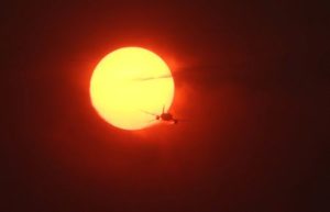 A commercial plane flies past a sun made dark orange by smoke from wildfires in Canada as seen from Washington, U.S., June 7, 2023. REUTERS/Leah Millis/File Photo