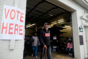 FILE PHOTO: A voter is seen exiting a polling station at the Selma Fire Station on Super Tuesday in Selma, Alabama , U.S., March 3, 2020. REUTERS/Michael A. McCoy/File Photo