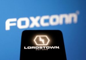 FILE PHOTO: Lordstown Motors and Foxconn logos are seen in this illustration taken, May 2, 2023. REUTERS/Dado Ruvic/Illustration/File Photo