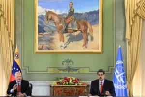FILE PHOTO: International Criminal Court prosecutor Karim Khan and Venezuela’s President Nicolas Maduro attend a meeting at the Miraflores Palace, in Caracas, Venezuela, November 3, 2021. Miraflores Palace/Handout via REUTERS