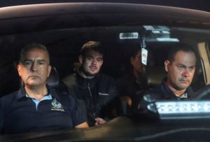 FILE PHOTO: Dutch citizen Joran van der Sloot, who was serving a 28-year sentence in Peru after confessing to killing a 21-year-old Peruvian woman, is escorted to the airport to be extradited to the U.S., to face charges of extortion and wire fraud against the family of Natalee Holloway, in a case linked to his alleged involvement in the disappearance of Natalee Holloway in Aruba in 2005, in Lima, Peru June 8, 2023. REUTERS/Sebastian Castaneda