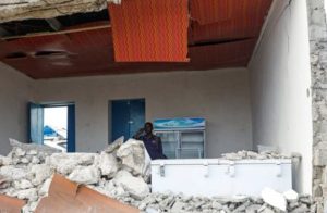 A Somali police officer uses his cell phone inside the rubble of the Pearl Beach Restaurant following an attack by Al Shabaab militants at the Liido beach in Mogadishu, Somalia June 10, 2023. REUTERS/Feisal Omar