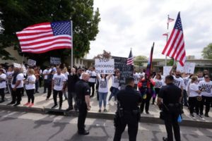 FILE PHOTO: Police divide parents and pro-LGBT counter protesters as they clash outside of an elementary school over a Pride Day assembly in Los Angeles, California, U.S., June 2, 2023. REUTERS/David Swanson