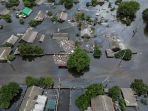 An aerial view shows a flooded area after the Nova Kakhovka dam breached, amid Russia’s attack on Ukraine, in Kherson, Ukraine June 10, 2023. REUTERS/Inna Varenytsia