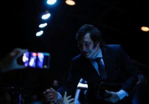 FILE PHOTO: Argentine congressman and presidential pre-candidate, Javier Milei, greets his supporters before the presentation of his book “El fin de la inflacion” (The End of the Inflation), at the Buenos Aires International Book Fair in Buenos Aires, Argentina May 14, 2023. REUTERS/Agustin Marcarian