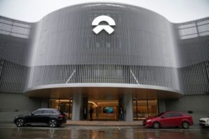 FILE PHOTO: A sign of Chinese electric vehicle (EV) maker Nio is pictured at its delivery center in Nanxiang, Shanghai, China March 23, 2023. REUTERS/Aly Song