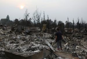 FILE PHOTO: A woman searches through the rubble of her destroyed home after a wildfire came through the area in Talent, Oregon, U.S. September 21, 2020. REUTERS/Jim Urquhart