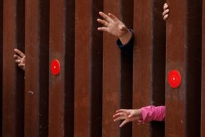 FILE PHOTO: A child’s hand reaches out, as migrants wait for food and water to be handed handed out, after gathering between the primary and secondary border fences, between the United States and Mexico, after the lifting of COVID-19 era Title 42 restrictions that have blocked migrants at the border from seeking asylum since 2020, near San Diego, California, U.S., May 12, 2023. REUTERS/Mike Blake