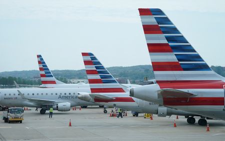FILE PHOTO: American Airlines jets sit at gates at Washington's Reagan National airport in Washington